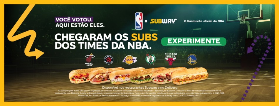 Dando continuidade à sua parceria com a NBA (National Basketball Association), a Subway®, maior rede de restaurantes do Brasil e do mundo, anuncia seis novos sanduíches, que receberam nomes de times campeões da liga americana de basquete, após votação feita com o público.