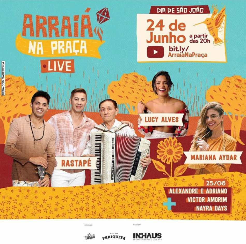 A Itaipava será a cerveja oficial do tradicional “Arraiá na Praça”. Virtual, mas gravado em São Paulo, o evento terá o ritmo da sanfona embalado ao som de Mariana Aydar, Lucy Alves, Rastapé, Victor Amorim, Nayra Days e Alexandre e Adriano, nos dias 24 e 25 de junho. A transmissão acontecerá no YouTube, no canal da Agência InHaus, responsável pela produção do evento.