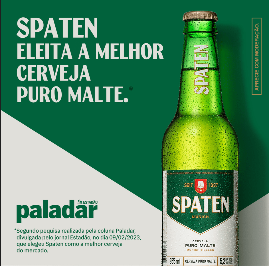 No mercado há mais de 600 anos, Spaten é uma cerveja de estilo forte que aposta na qualidade e na diferenciação para se manter relevante para o consumidor. A marca que revolucionou o mercado no ano passado, agora ganha o título de Melhor Cerveja Puro Malte do mercado, pelo júri da coluna Paladar, do jornal O Estado de S. Paulo.