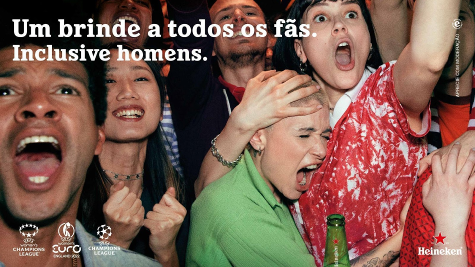 A Heineken®, patrocinadora oficial das competições UEFA, incluindo a UEFA Champions League, pelo 17° ano consecutivo, segue fortalecendo o movimento pela inclusão de gênero no futebol. Neste ano, a marca retoma a campanha “Um brinde a todos os fãs. Inclusive homens”, em canais digitais e TV. Criada pela Publicis Itália, a campanha exalta a paixão das torcedoras.