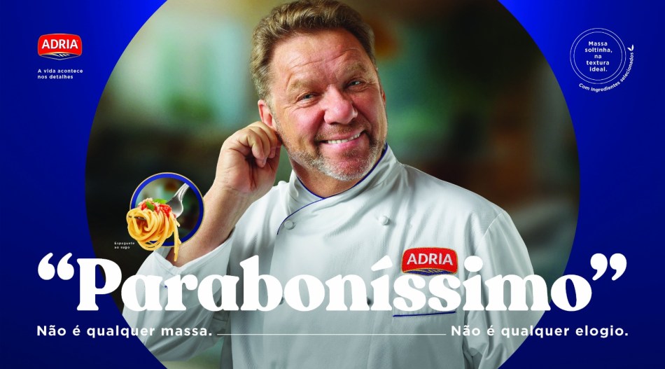 Adria, marca de massas e biscoitos da M. Dias Branco, acaba de divulgar sua nova campanha Neologios a partir do mote “Não é qualquer massa. Não é qualquer elogio”. As receitas feitas com Adria ficam tão deliciosas, que elogios comuns não são capazes de traduzi-las. É por isso que o chef Claude Troisgros, considerado um dos grandes nomes da gastronomia brasileira, foi convidado pela marca para inventá-los nesta campanha – assinada pela Lew’Lara\TBWA.