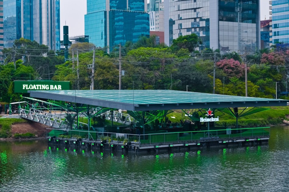 No dia 29 de setembro, celebridades, influencers e formadores de opinião compareceram à inauguração do Heineken Floating bar – uma intervenção sem fins lucrativos que convida as pessoas a repensarem a importância da reocupação para transformar as cidades em que vivemos, e, principalmente, para trazer o Rio Pinheiros de volta para o foco das conversas. O projeto faz parte da plataforma Green Your City, da Heineken, que reúne os compromissos de sustentabilidade da marca em um olhar sobre a vida noturna, a música e o relacionamento com as cidades por meio de experiências relevantes e da ressignificação do espaço urbano.