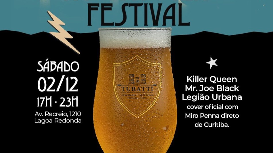 A Turatti, maior e mais premiada cervejaria artesanal do Ceará, realiza, no próximo dia 2 de dezembro, o Rock N’ Bier Festival. Serão seis horas de festa com open bar de chope e um tributo aos clássicos do rock mundial com Killer Queen, Mr. Joe Black e Miro Penna – cover oficial da banda Legião Urbana, que sairá de Curitiba e desembarca exclusivamente em Fortaleza para participar do festival.