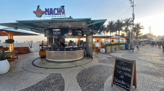 Em frente ao Copacabana Palace, o Nacho Praia, administrado pela concessionária Orla Rio, promete movimentar ainda mais o calçadão mais famoso da cidade. Funcionando 24 horas, todos os dias da semana, o quiosque, no bairro de Copacabana, oferece em seu cardápio: quesadilhas, nachos, burritos, tacos, drinks, entre outros itens típicos da culinária mexicana. Além da decoração com diversos sombreros. Haverá também música ao vivo, semanalmente, no Nacho Praia. O cardápio é assinado pelo renomado chef Ronaldo Canha e a carta de drinks pelo mixologista Thiago Teixeira.