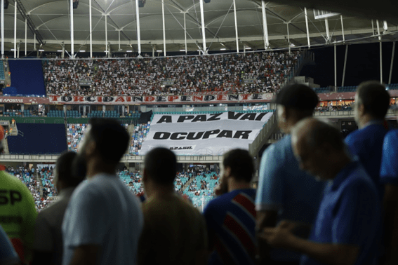 O público de cerca de 30 mil presentes na partida entre Bahia e São Paulo, na Arena Fonte Nova, em Salvador, na noite desta terça-feira (5/11), abraçou a campanha que marcou a 32ª rodada do Brasileirão: o Setor Sudoeste do estádio deixou 384 cadeiras vazias cobertas com camisas de diversos times brasileiros. O número simboliza o total de vítimas que perderam a vida por causa da violência no futebol, entre 1988 e 2023.