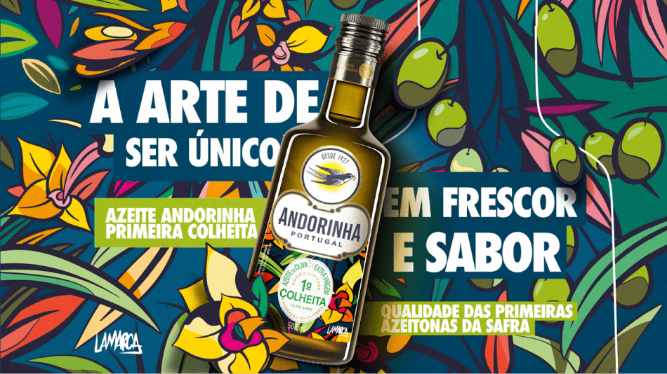Anualmente a marca de azeites Andorinha, pertencente ao Grupo Sovena, lança o Azeite Extra Virgem Primeira Colheita – um produto de alta qualidade, que compõe a categoria de Especiais da marca e recebe esse nome por ser feito a partir das primeiras azeitonas colhidas na safra. Pelo segundo ano, Andorinha trabalha com o mote “O Revelar do Olival” e que, além de revelar esse novo produto diferente a cada safra, também revela um novo artista, trazendo um rótulo exclusivo e colecionável. Este ano, a arte da nova embalagem foi produzida com o Marcelo Lamarca e teve como tema “A Floração da Oliveira”.